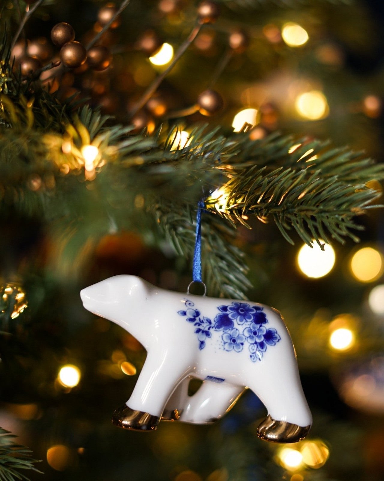 • Design: This ceramic ornament features a white polar bear in a walking pose, with its four paws dipped in gold paint, adding a festive and elegant touch