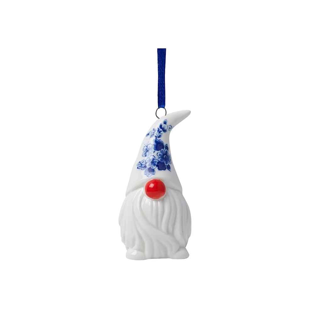 • This funny Christmas ornament is in the shape of a gnome with a big red nose and a large, pointed hat on his head