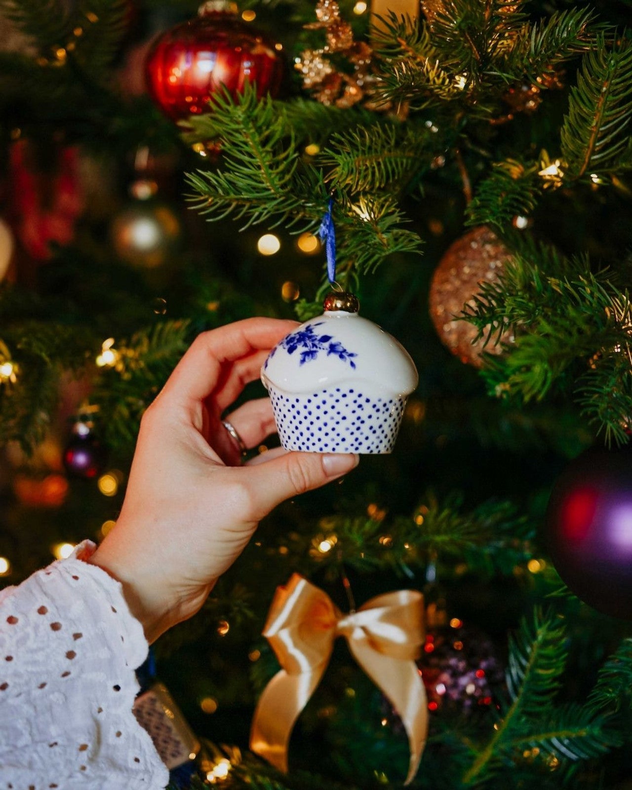 • Design: This charming ceramic ornament is crafted in the shape of a cupcake, adorned with intricate Delft blue floral patterns and topped with a golden cherry, capturing the essence of Dutch craftsmanship and festive cheer