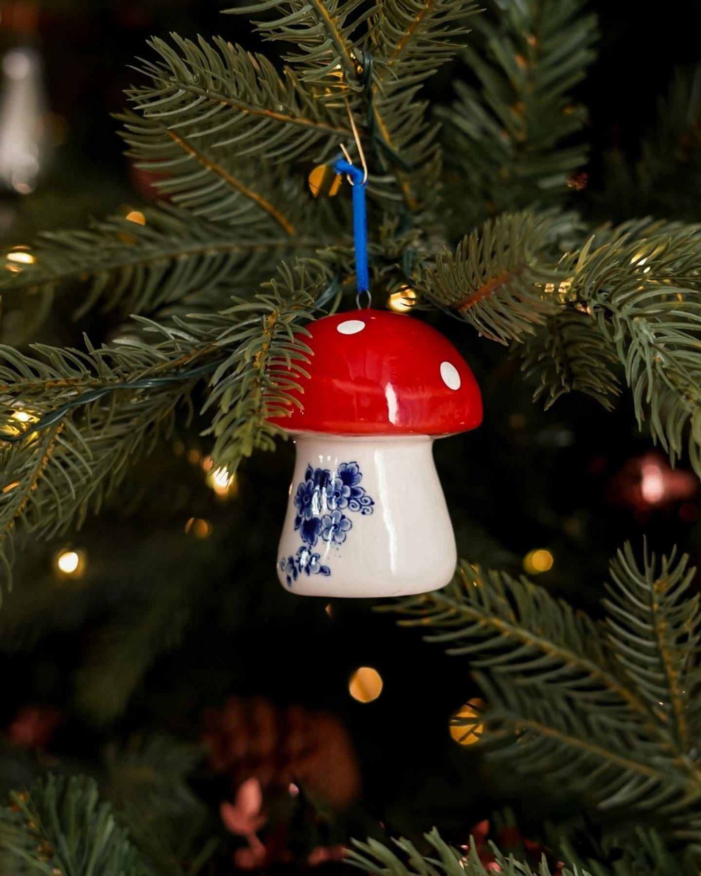 • Design: This ceramic ornament features a mushroom adorned with classic Delft blue patterns, capturing the essence of Dutch artistry. Its unique design adds a touch of woodland magic to your Christmas tree