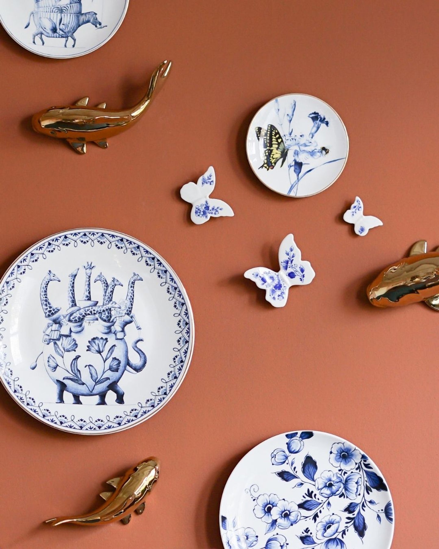 • Porcelain-white wings decorated with Delft blue floral patterns